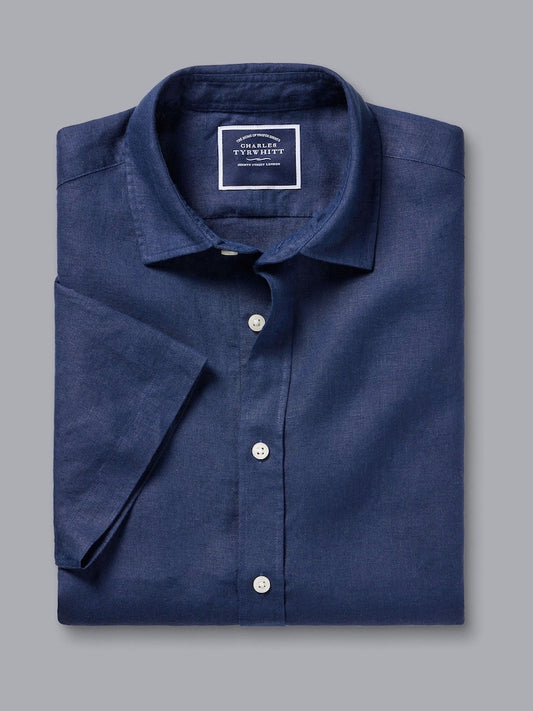 Pure Linen Short Sleeve Slim fit Shirt - Navy