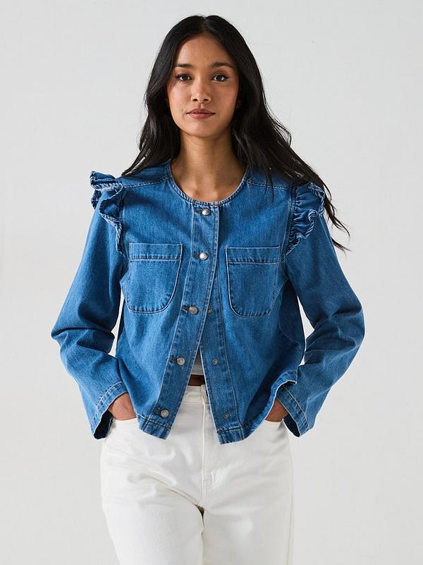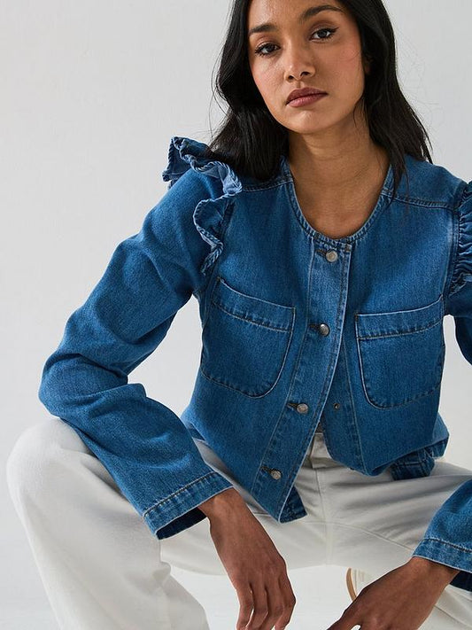 V by Very Denim Ruffle Trophy Jacket - Mid Wash