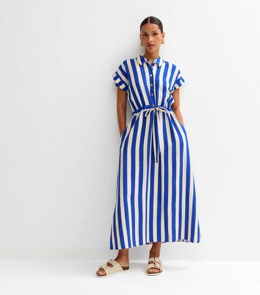 Double cuff Non-Iron Stretch Poplin Bengal Stripe Slim Fit Shirt – Cornflower Blue