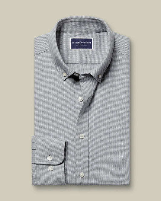 Textured Flannel Slim Shirt - Light Grey