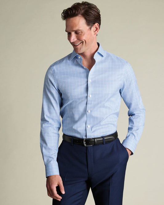 Cutaway collardetails about product:Non-Iron Twill Check Slim Fit Shirt - Cornflower Blue