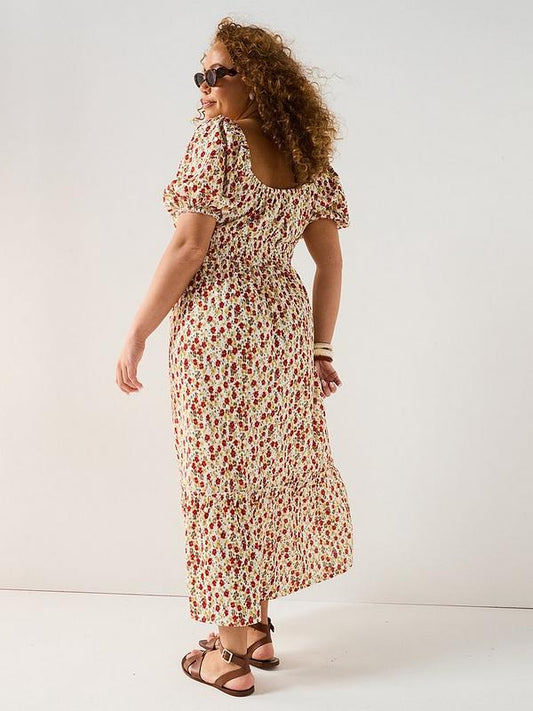 V by Very Curve Shirred Waist Ditsy Midi Dress - Print