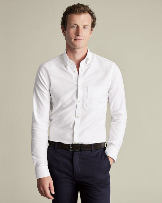 Button Down Non-Iron Stretch Oxford Slim Fit Shirt - White