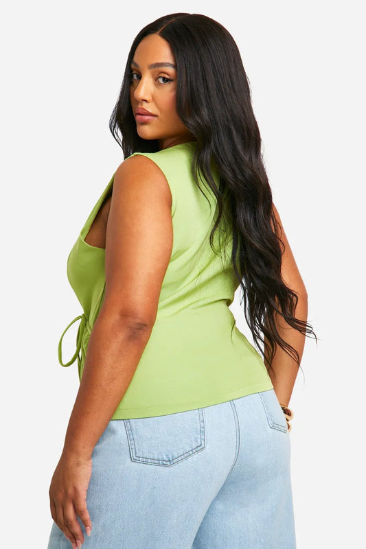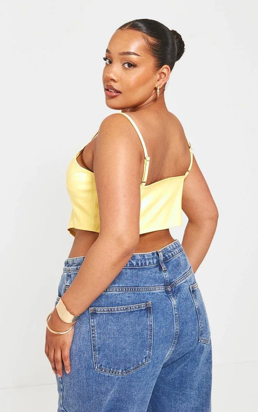 Plus Lemon Hook And Eye Seam Detail Corset Top