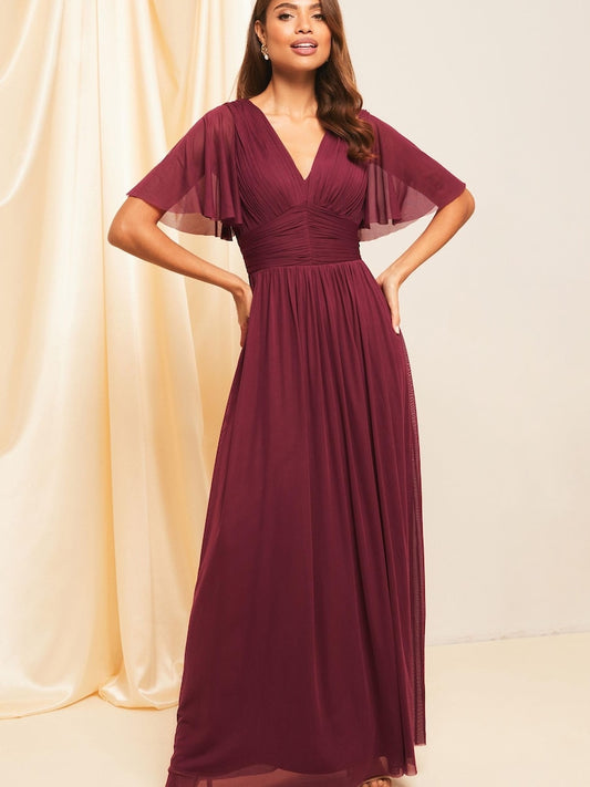 Red Empire Short Sleeve Bridesmaid Maxi Dress