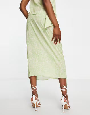 Satin Wrap Midi Skirt Co-ord In Bright Leopard Print