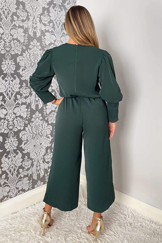 Teal Wrap Top Long Sleeve Culotte Jumpsuit