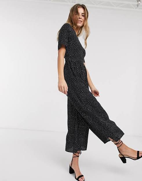 Tea Jumpsuit With Button Back Detail in Spot Print