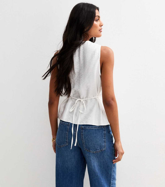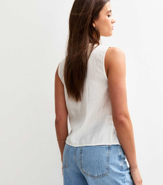Sold outWhite Sleeveless Crew Neck Waistcoat