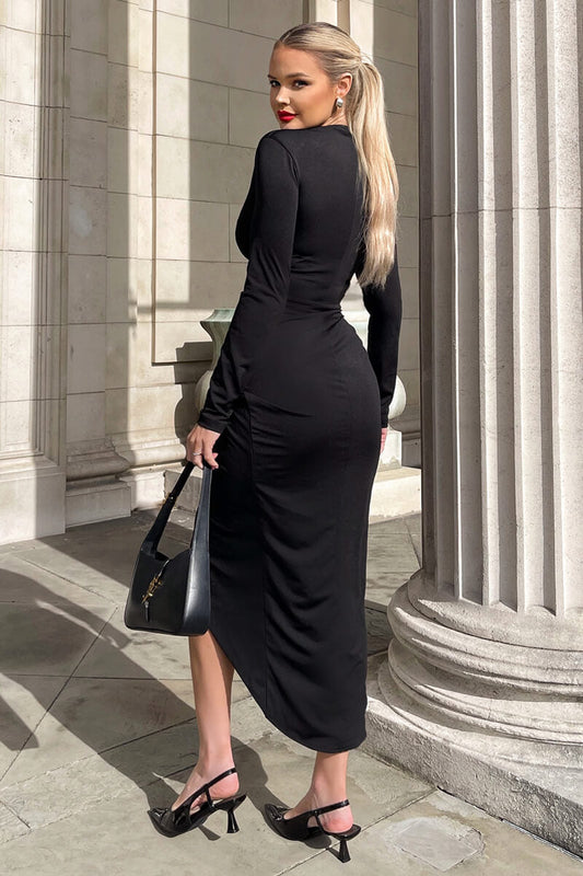 Sold outBlack Long Sleeve Wrap Midi Dress