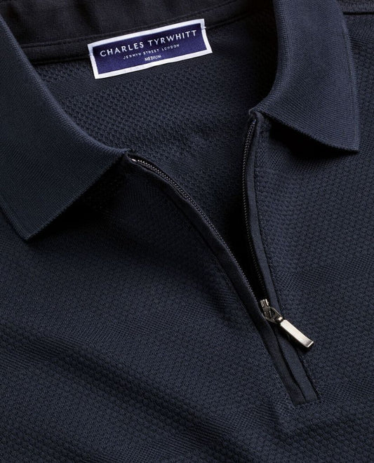 Sold outZip-Neck Polo Shirt - Navy Blue