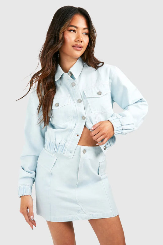 Bleach Wash Cargo Pocket Denim Mini Skirt