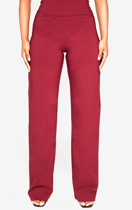 Cherry Red Stretch Woven Low Rise Cargo Trousers