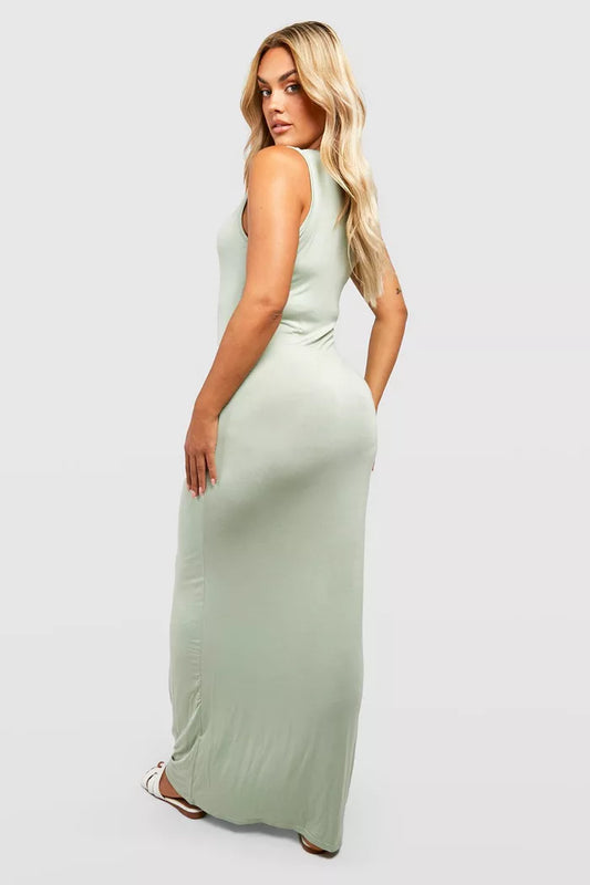 Mint Racer Neck Maxi Jersey Dress
