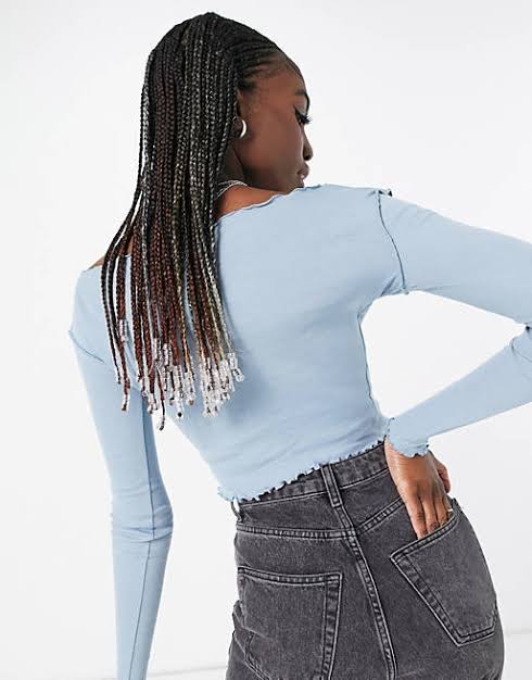 Tall long sleeve lettuce top in denim