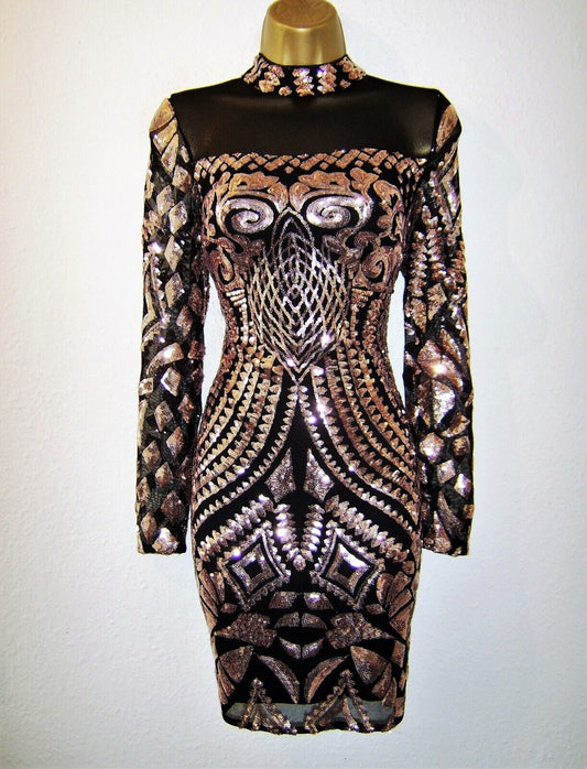 Sam Faiers Mesh Sequin Turtle Neck Bodycon Dress