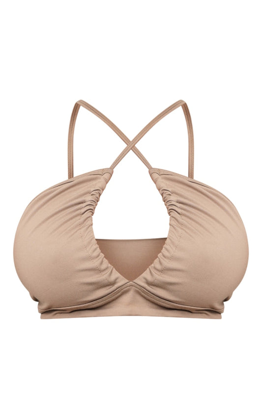 Shape Taupe Brushed Cotton Ruched Strap Sports Bra