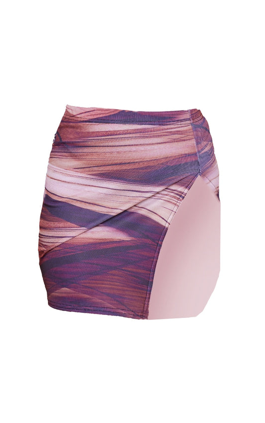 Orange Woven Abstract Printed Wrap Front Mini Skirt