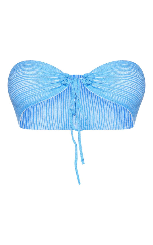 Shape Blue Contrast Knit Tie Bandeau Crop Top