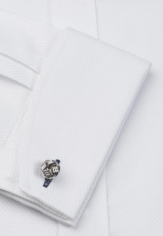 Double Cuff Cutaway Collar Non-Iron Stretch Kensington Weave Slim Fit Shirt - White