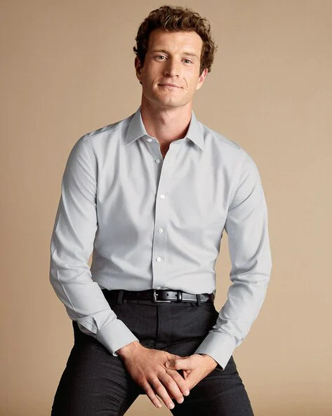 Classic Collar Non-Iron Twill Shirt - Silver Grey