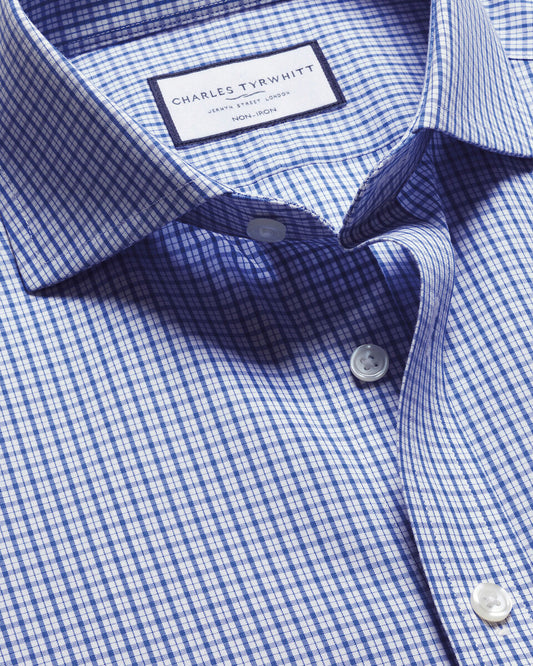 Cutaway Collar Non-Iron Poplin Grid Check Slim Fit Shirt - Cobalt Blue