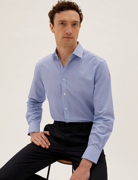 Non-Iron Royal Oxford Stripe Extra Slim Fit Shirt - Sky Blue