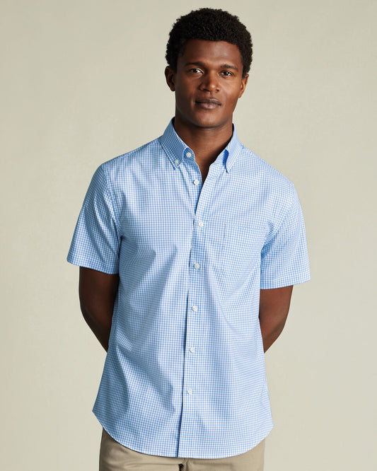 Non-Iron Stretch Poplin Short Sleeve Shirt - Sky Blue