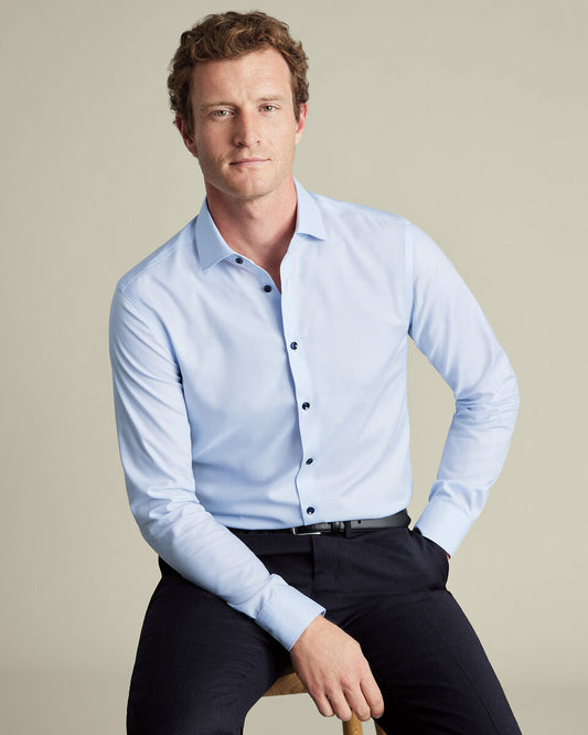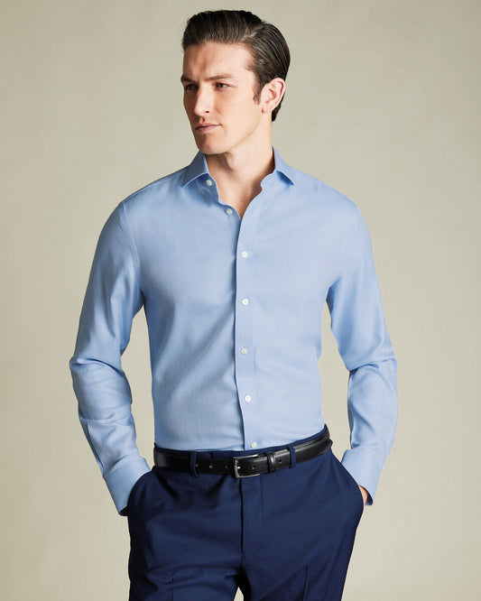 Cutaway Collar Non-Iron Herringbone Slim Fit Shirt - Sky Blue