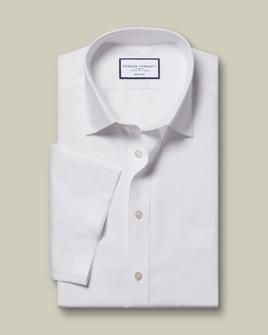 Non-Iron Poplin Slim Fit Short-Sleeve Shirt - White