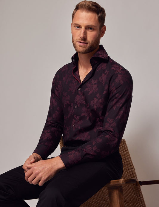 Burgundy Floral Jacquard Shirt