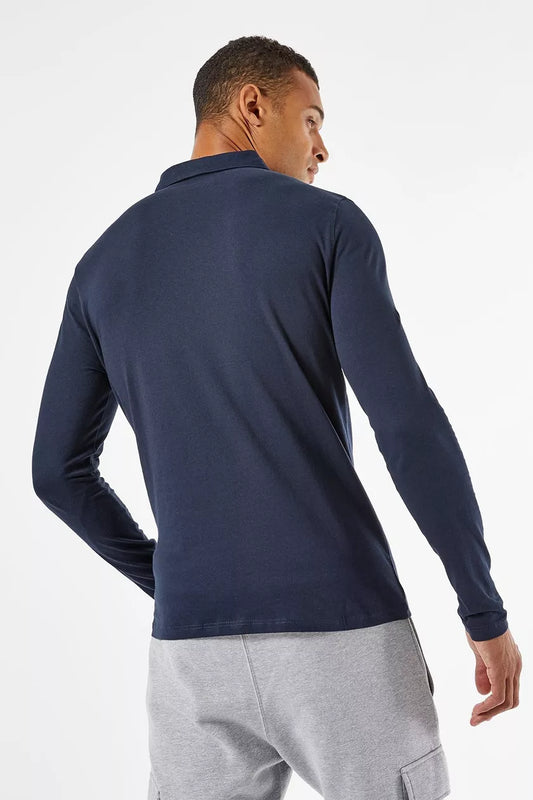 Navy Long Sleeve Concealed Placket Polo