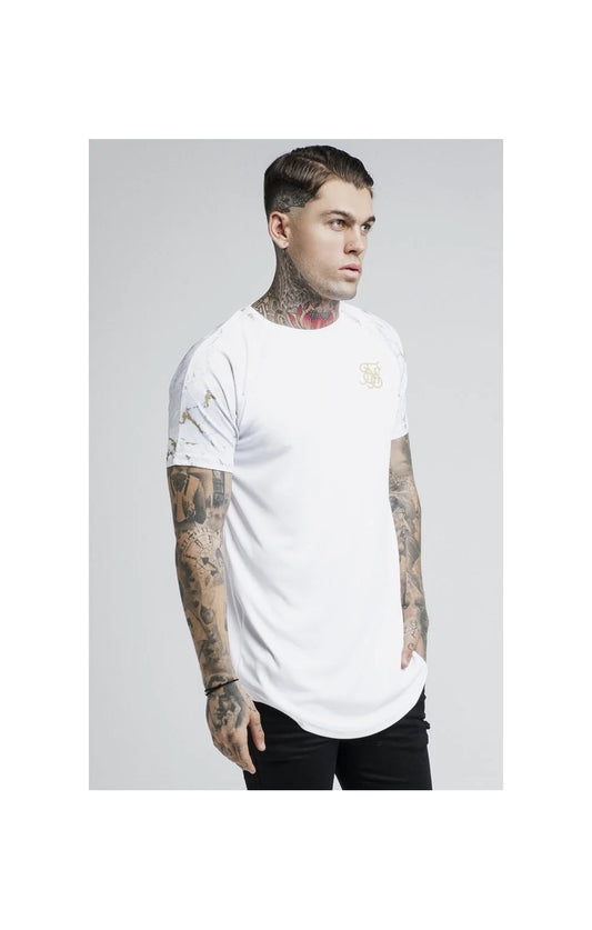 Marbleise Raglan Curved Hem Tee - White & Light Grey