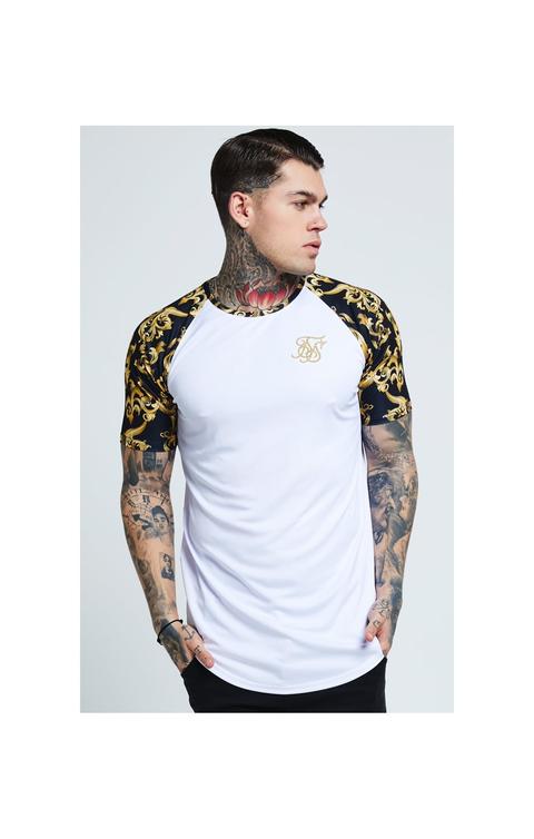 Vendor:Sik SilkRegular price ₦8,800.00 NGNRegular priceUnit price / perSale price ₦8,800.00 NGNRaglan Curved Hem Tee – White & Gold Venetian
