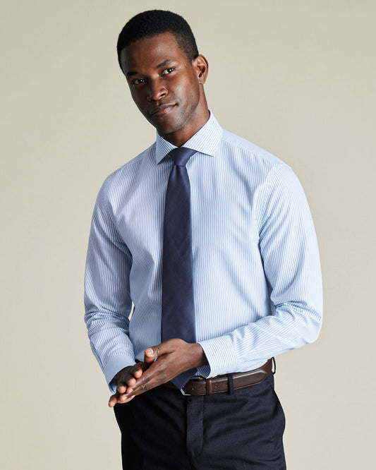 Non-Iron Stretch Poplin Stripe Extra Slim Fit Shirt - Ocean Blue