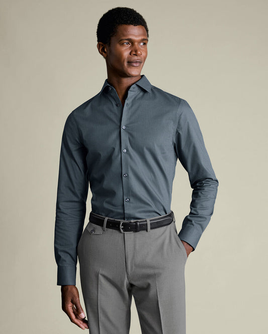 Non-Iron Stretch Poplin Slim Fit Shirt - Charcoal
