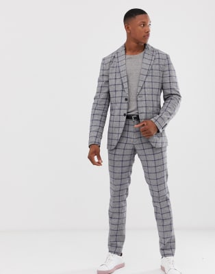 Skinny Fit Denim Wedding Blue Check Suit Jacket