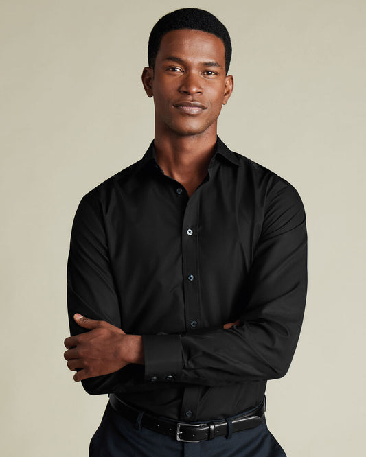 Cutaway Collar Non-Iron Poplin Slim Fit Shirt - Black