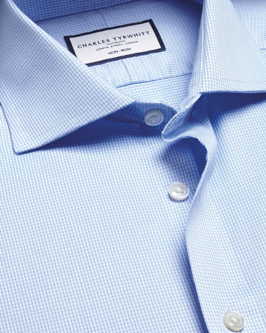 Double Cuff Cutaway Collar Non-Iron Puppytooth Slim Fit Shirt - Sky Blue
