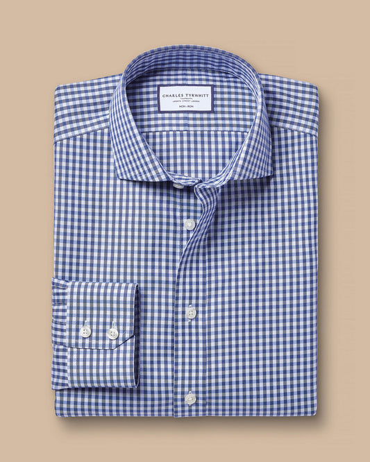 Cutaway Collar Non-Iron Twill Gingham Shirt