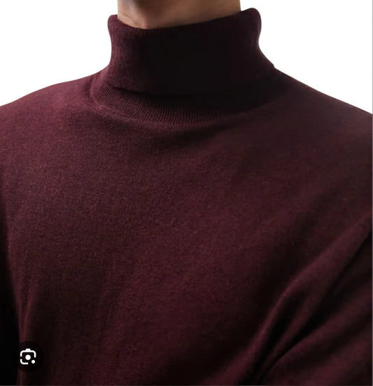 Knitted Roll Neck Jumper in Burgundy Marl