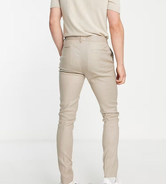 ASOS DESIGN linen mix super skinny smart trousers in stone