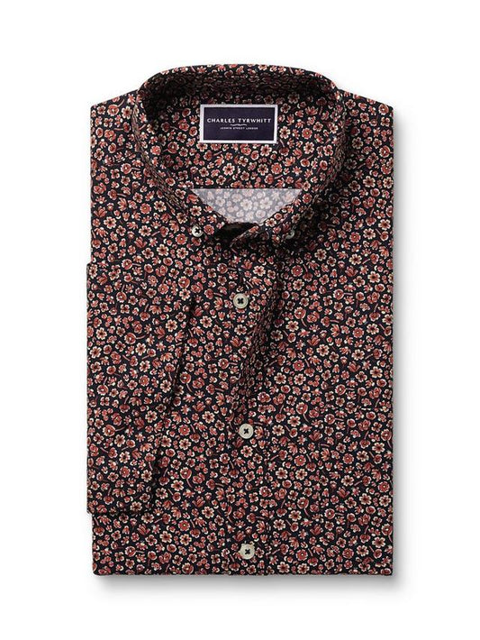 Cotton Floral Slim Fit Button-Down Collar Shirt, Dark Navy