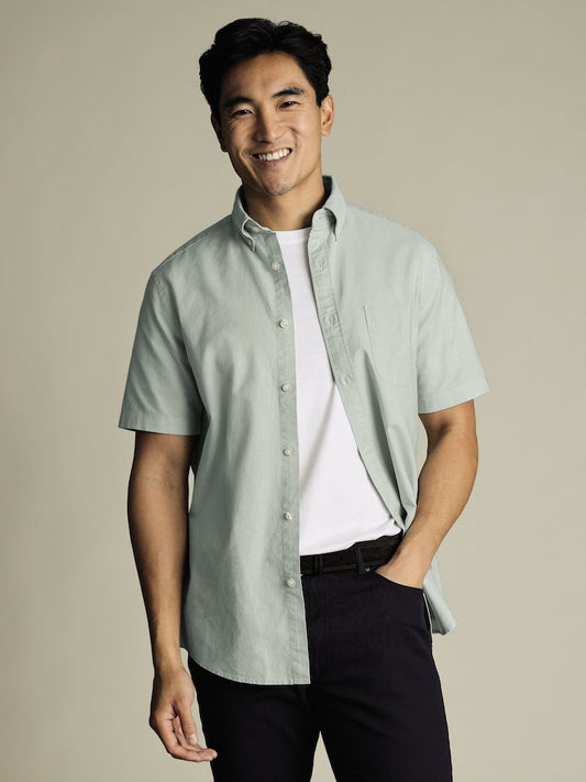 Everyday Short Sleeve Grandad Collar Oxford Shirt - Navy