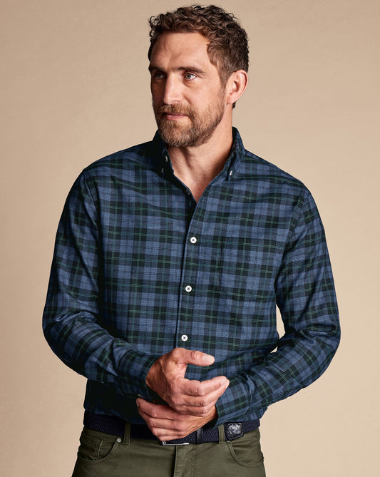 Brushed Cotton Slim Fit Twill Check Shirt - Dark