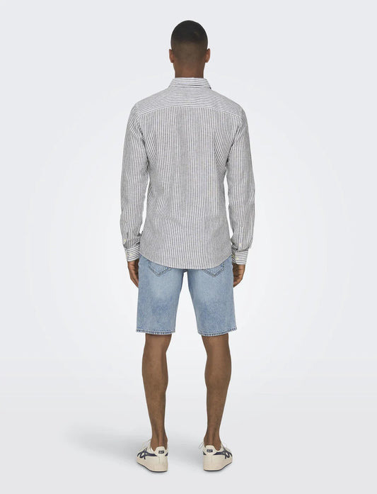 ONSCAIDEN Long Sleeve Stripe Linen Shirt -Navy Blue
