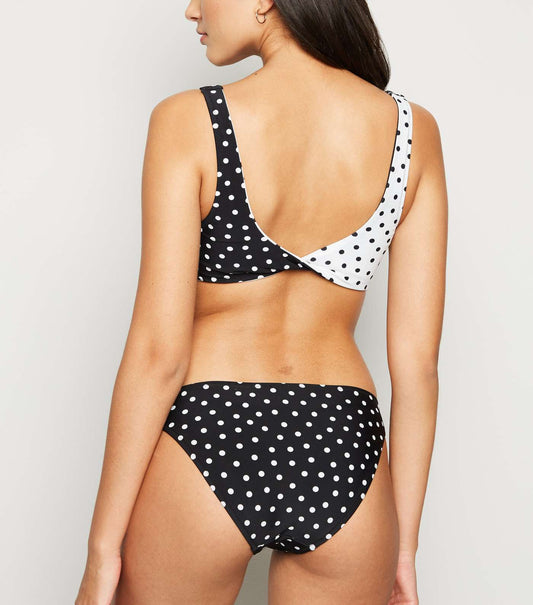 Black Spot Twist Back Crop Bikini Top