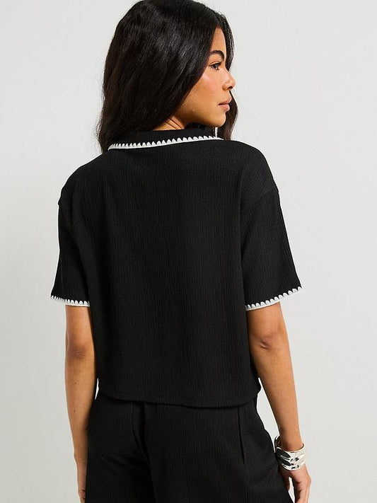 V by Very Whipstitch Button Up Shirt Co-Ord - Black