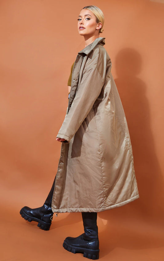 Sage Green Midi Nylon Padded Toggle Detail Jacket