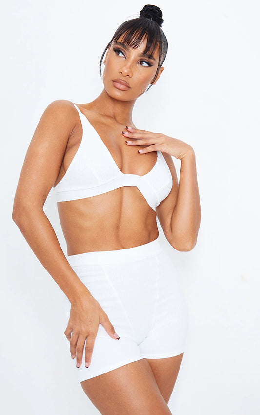 Cream Ribbed Plunge Bralet